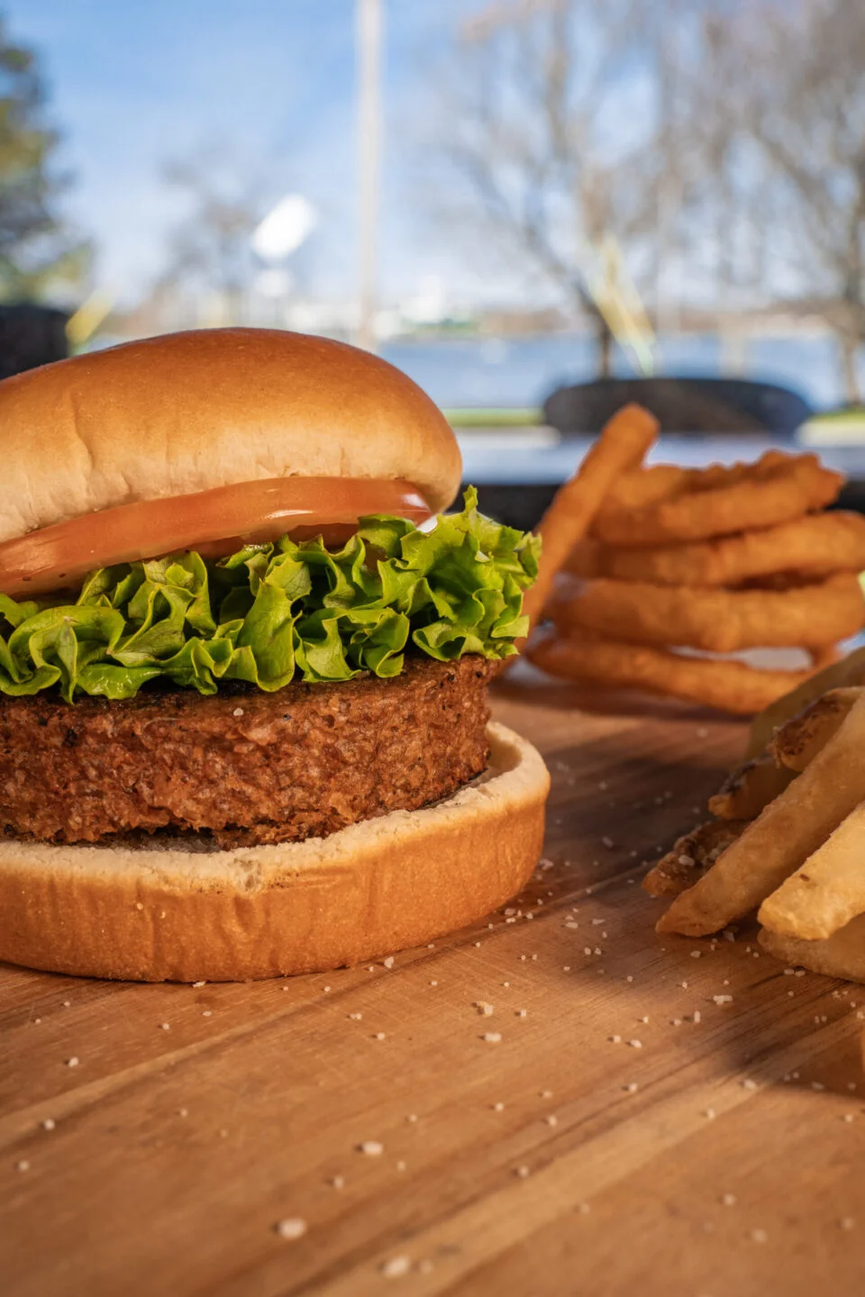 Our lunch/dinner menu features a wide variety of hot dogs, burgers, sandwiches (chicken, specialty, and seafood), fries, sides, and salads. We offer gluten-free rolls and even have a vegan-friendly section. We have a separate kids menu that comes served on a Mississippi Mudds frisbee for them to take home.